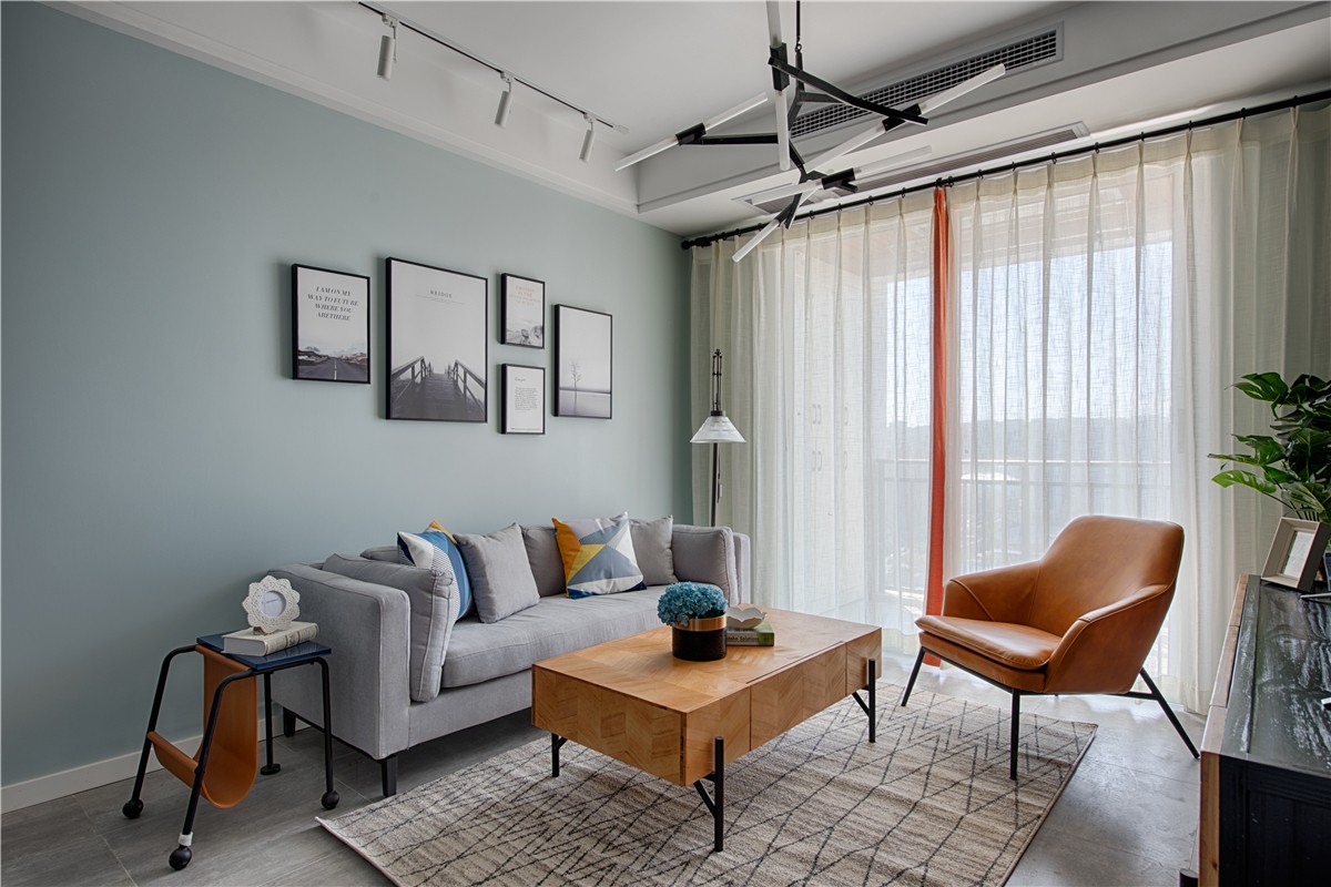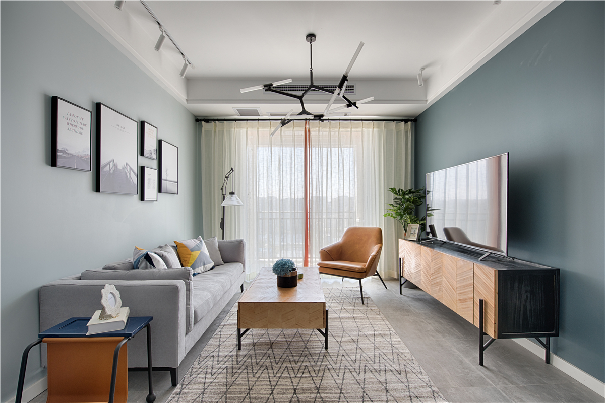 北欧室内装修设计,客厅采用灰色配脏橘色,稳重又不失活跃。选用橘色这样鲜艳色彩,只需把其降低一个色度,就让整个空间瞬间亮了起来,充满新鲜感,却又不突兀。