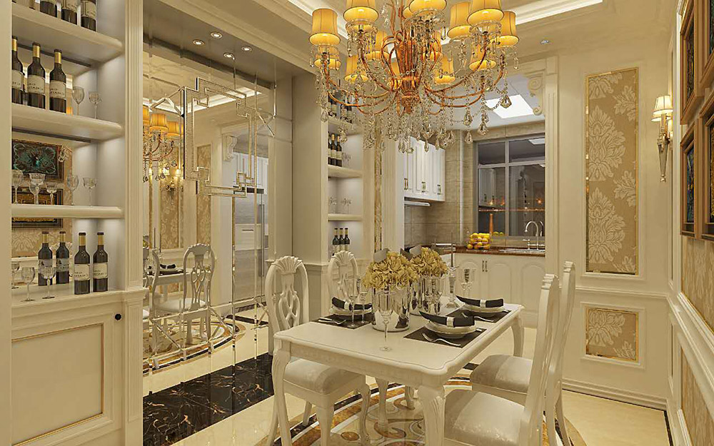 欧式风格室内装修效果图-龙光玖珑湖三居136平米