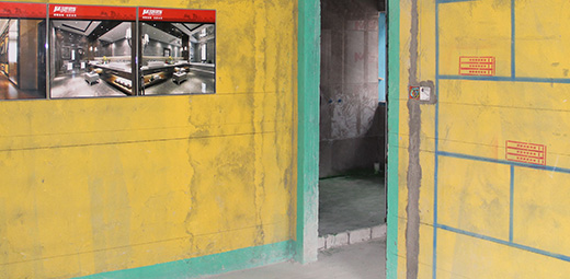 2)干透后用砂纸磨光;以上工序一般要连续三遍,直至墙面批平为止;